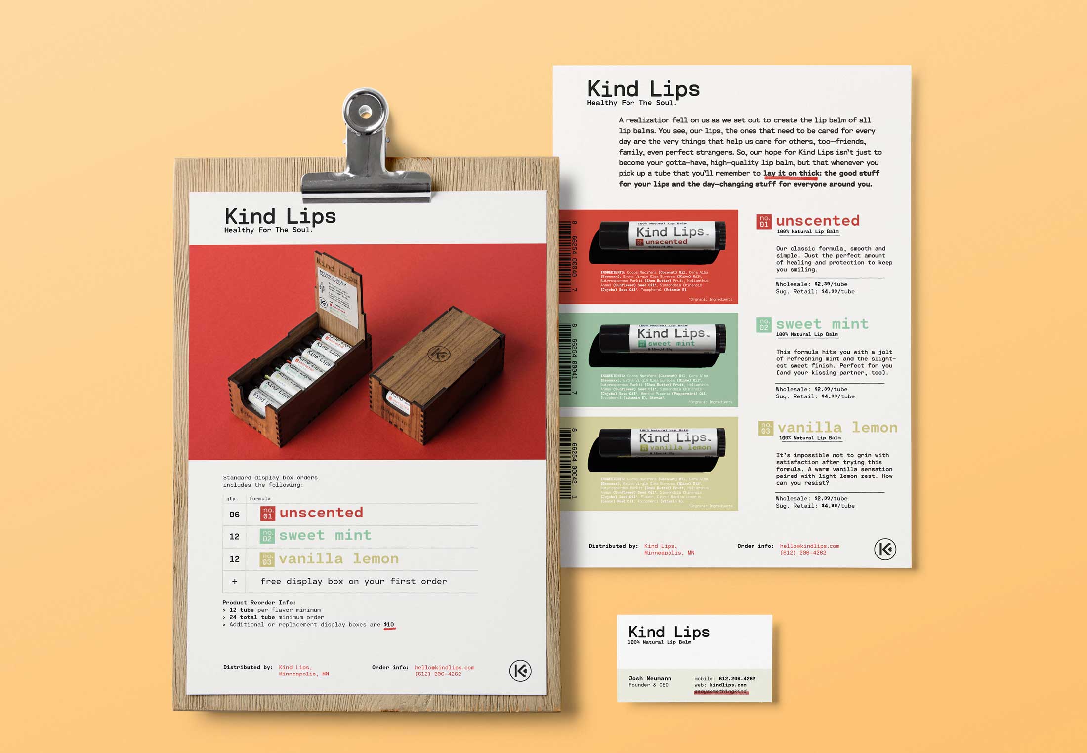 The founder, Josh Neumann, set out to create an all natural lip balm that would not only be enjoyable during application but serve as a reminder to treat each other with care.